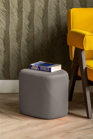 Polyester er et slidstærkt materiale, der tåler hverdagens brug. Mesh-teksturen giver produktet et luftigt udtryk, mens den musgrå farve er neutral nok til at fungere i både moderne og klassiske indretninger. Du kan let integrere poufen i dit eksisterende farveskema uden store ændringer.