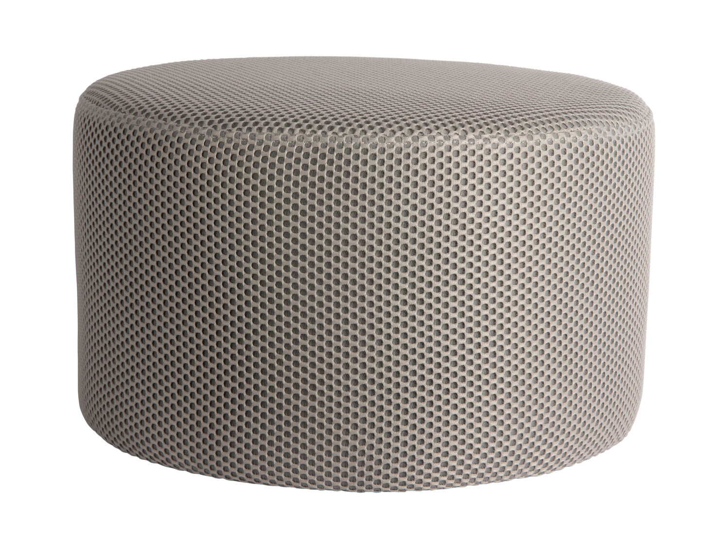 Med en diameter på 50 cm og en højde på 30 cm passer poufen ind i de fleste rum uden at fylde for meget. Dimensionerne gør den velegnet som ekstra siddemulighed, når du har gæster, eller som en afslappet fodstøtte foran sofaen. Det synlige mesh-mønster tilføjer tekstur uden at dominere rummet.