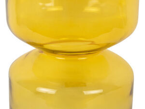 Dette sidebord fra Leitmotiv er lavet af glas med en blank, gul finish. Glasmaterialet giver en moderne fremtoning og er let at rengøre med en fugtig klud. Den timeglaslignende form med to afrundede sektioner skaber et skulpturelt udtryk i rummet.