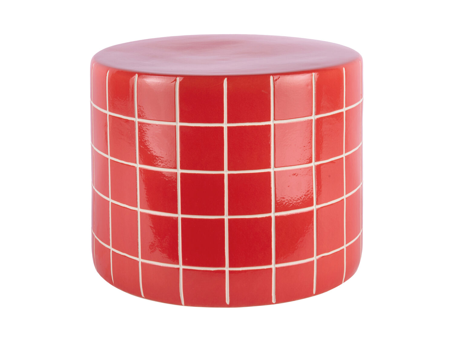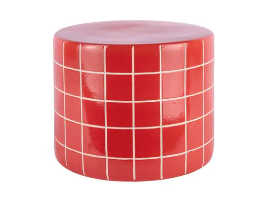 Med en diameter på 42 cm fylder bordet ikke for meget, men giver stadig nok plads til dine ting. Højden på 34 cm placerer det i en praktisk højde ved siden af en sofa eller stol. Det skarlagenrøde design med hvidt gitter tilføjer et farveaccent til din indretning.