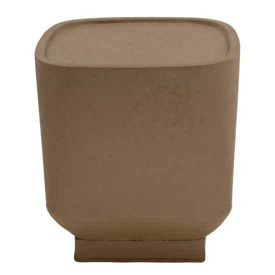 Jernkonstruktionen betyder, at bordet står solidt, selv når du placerer lamper, bøger eller drikkevarer på det. Materialet kræver minimal vedligeholdelse og tåler hverdagens slid. Den kvadratiske form med afrundede kanter giver et moderne udtryk, der fungerer i stuen, soveværelset eller kontoret.