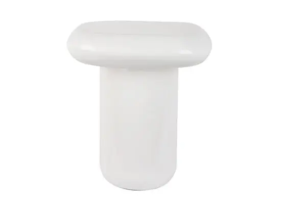Jernkonstruktionen betyder, at bordet kan bære daglig brug uden at miste sin form. Den hvide overflade giver et moderne udtryk, der fungerer både i stuen, soveværelset og entréen. Det cylindriske design med afrundet top giver en blød kontrast til skarpe linjer i moderne indretning, mens materialet sikrer stabilitet.