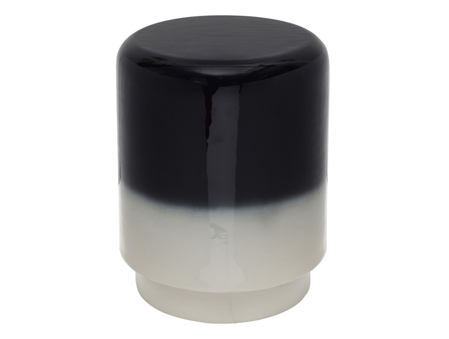 Denne skammel er fremstillet af jern, hvilket giver dig et robust møbel, der holder i mange år. Materialet sikrer stabilitet, så skamlen kan bruges både som ekstra siddeplads og som et praktisk sidebord. Den cylindriske form med gradientfarve fra sort til varm grå giver et moderne udtryk.