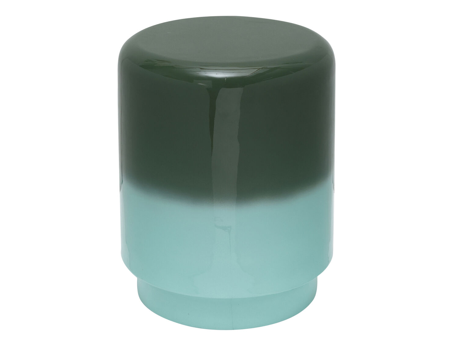 Med en højde på 45 cm passer skamlen til standardborde og kan bruges som ekstra siddemulighed eller som dekorativt element. Farveovergangen fra junglegrøn til grå jade tilføjer et unikt visuelt element, der skiller sig ud fra ensartede møbler. De kompakte mål på 35 cm i diameter betyder, at den finder plads i mindre rum uden at dominere.