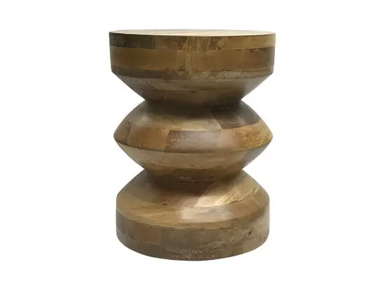 Denne skammel er fremstillet af mangotræ, et materiale der er anerkendt for sin styrke og holdbarhed. Mangotræets naturlige struktur giver hver skammel et unikt udtryk med synlige årer og variationer i farvetonen. Overfladen er glat og poleret, hvilket fremhæver træets naturlige skønhed.