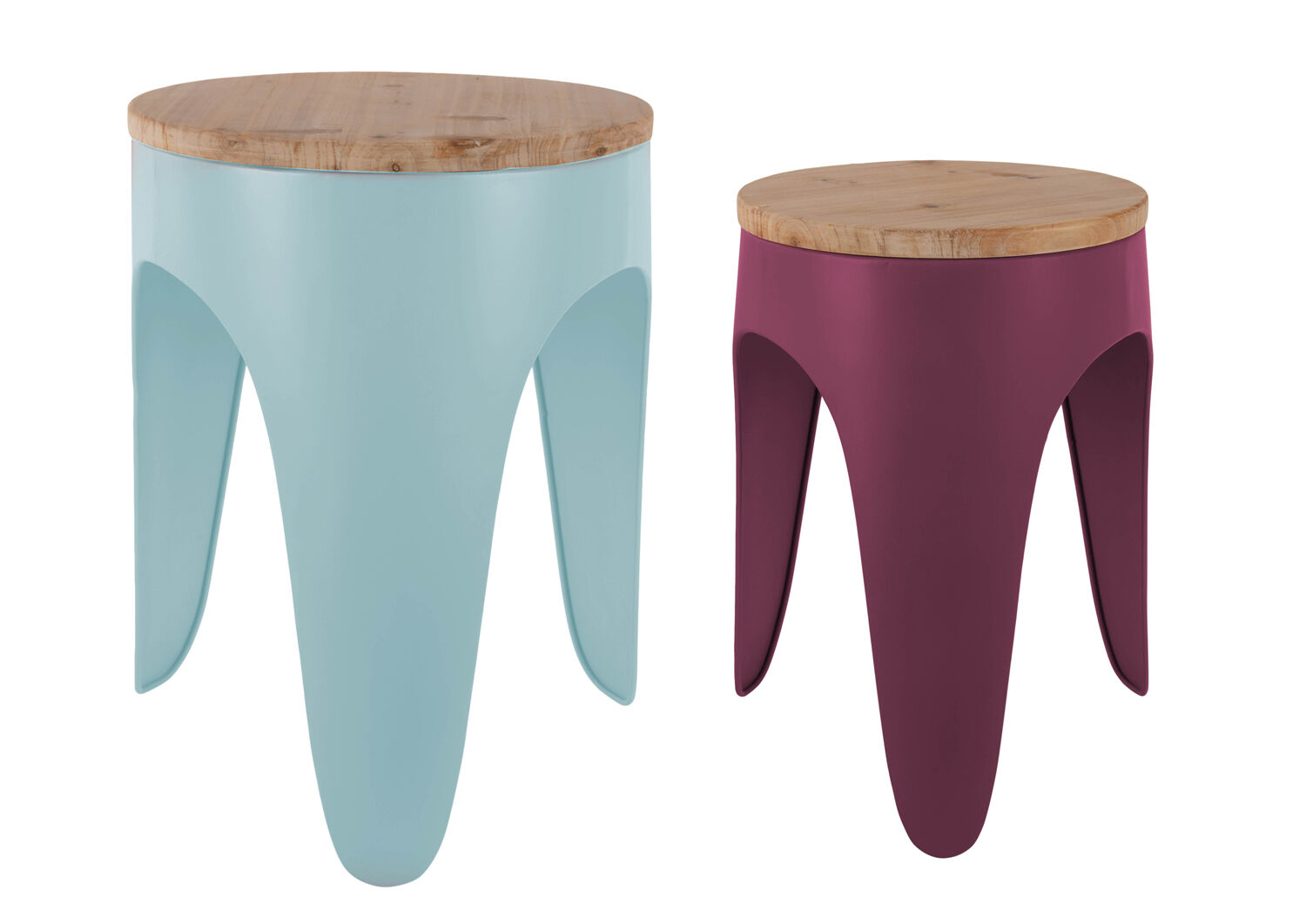 Leitmotiv - Stool set Double Funky soft blue & dark mauve