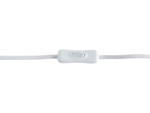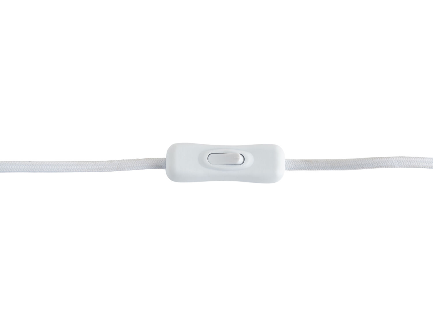 Den hvide tænd/sluk-knap sidder på ledningen, så du nemt kan tænde og slukke lampen uden at fumle bag møblerne eller række efter fatningen. Den cylindriske lampefod giver en stabil base, hvilket reducerer risikoen for, at lampen vælter, hvis du støder ind i den.