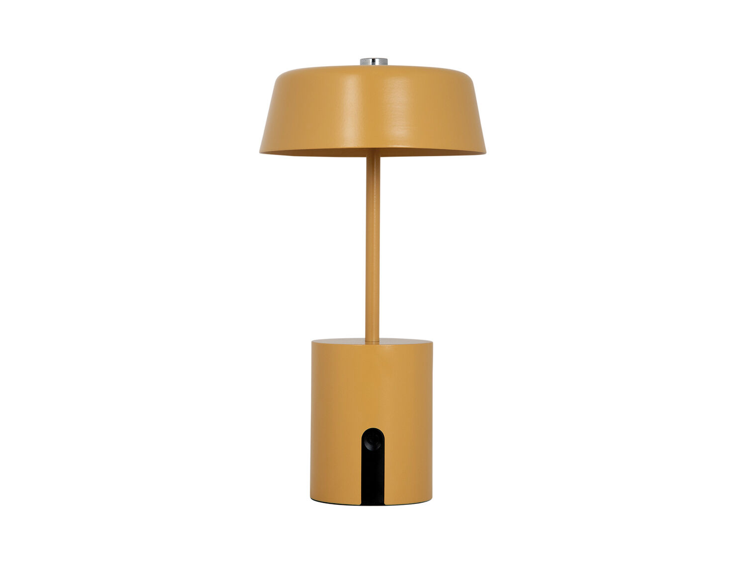 Denne bordlampe fra Leitmotiv kombinerer moderne design med en karakteristisk okkergul farve. Lampen er fremstillet i jern med en cylindrisk base og en slank stang. Med en diameter på 12 cm og en højde på 22,5 cm passer den ind i både små og større rum.