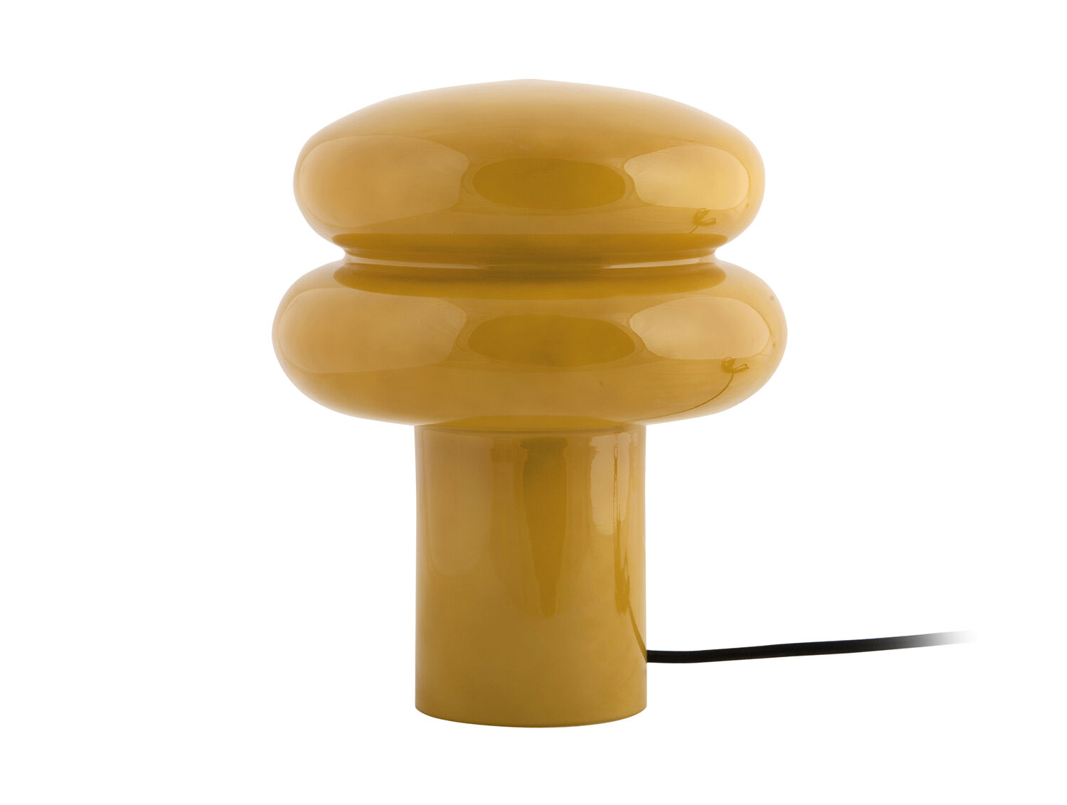 Denne bordlampe fra Leitmotiv har et karakteristisk dobbelt ringdesign i okker-gul. Glasmaterialet giver lampen en glat overflade, der er nem at vedligeholde, og farven tilføjer varme til dit rum. Med en højde på 24 cm og en diameter på 20 cm passer den til både hjemmet og kontoret.