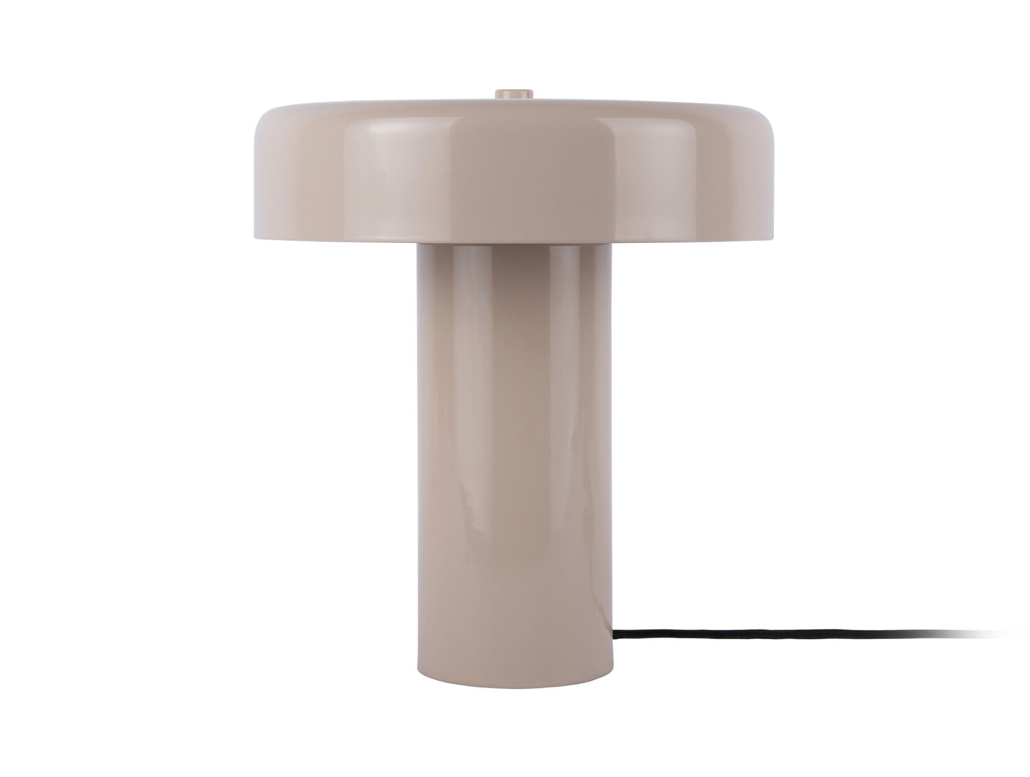 Denne bordlampe fra Leitmotiv kombinerer en cylindrisk base med en bred, flad lampeskærm i varm grå. Fremstillet af jern giver den en robust konstruktion, der holder til daglig brug. Med en højde på 26 cm og en diameter på 24 cm passer den godt på et skrivebord eller sidebord uden at fylde for meget.