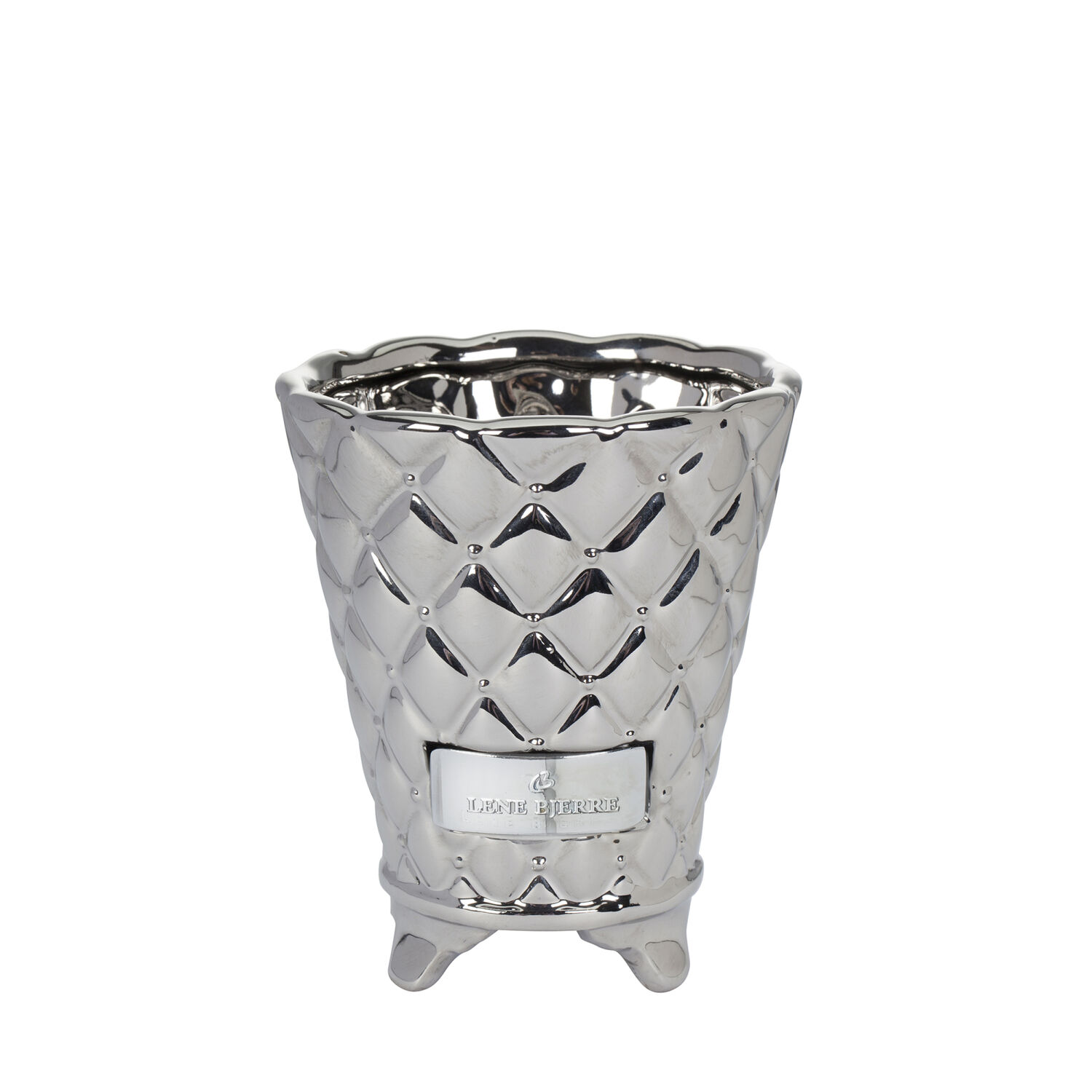 Det quiltede look og den skinnende overflade giver skjuleren en særlig karakter. Det diskrete sølvskilt med monogram understreger produktets eksklusive præg. De fire små fødder sikrer stabilitet og beskytter samtidig dine overflader.