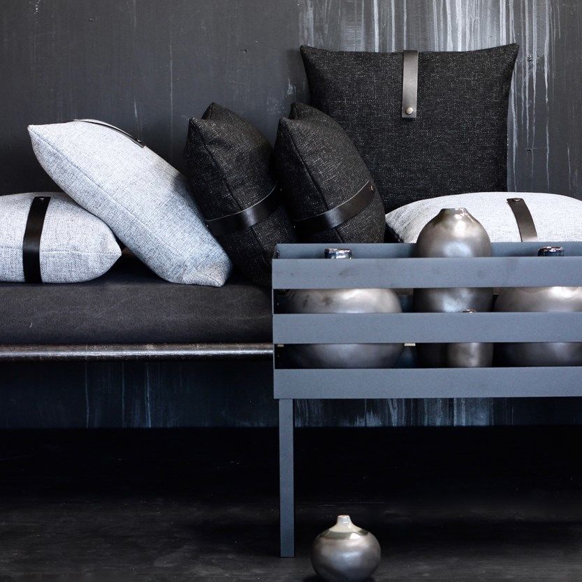 Puden er udstyret med en superfin detalje i form af en læderrem af sort kernelæder. En flot læderdetalje, som skaber en superfed kontrast til pudens stof, og som samtidig understreger pudens rustikke og enkle udtryk.