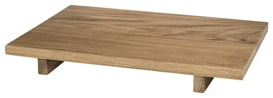 Dette serveringsbræt er skabt af massivt egetræ, der fortæller en historie om holdbarhed og kvalitet. Med dimensioner på B25 x L35 x H4 cm får du en funktionel overflade til servering og organisering i køkkenet. De små fødder løfter designet fra bordet.