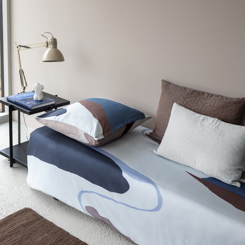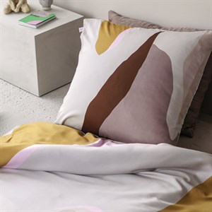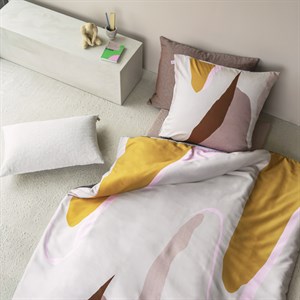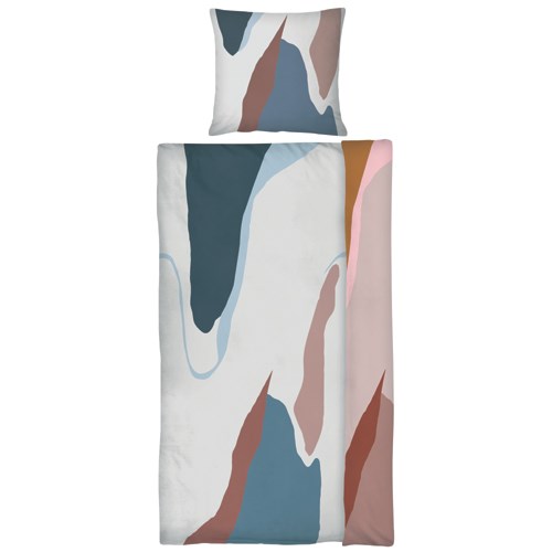 Sengesættet GALLERY fra Mette Ditmer er designet med et abstrakt mønster, hvor de smukke farver komplementer hinanden. Du kan næsten fornemme penselstrøgene på et lærred i dette sengesæt, der både er kreativt og udtryksfuldt i designet samtidig med, at det er roligt og harmonisk. Sengesættet er tosidet, så for- og bagside har hvert sit udtryk med forskellige farver. På den måde kan du vende sengetøjet efter behag.