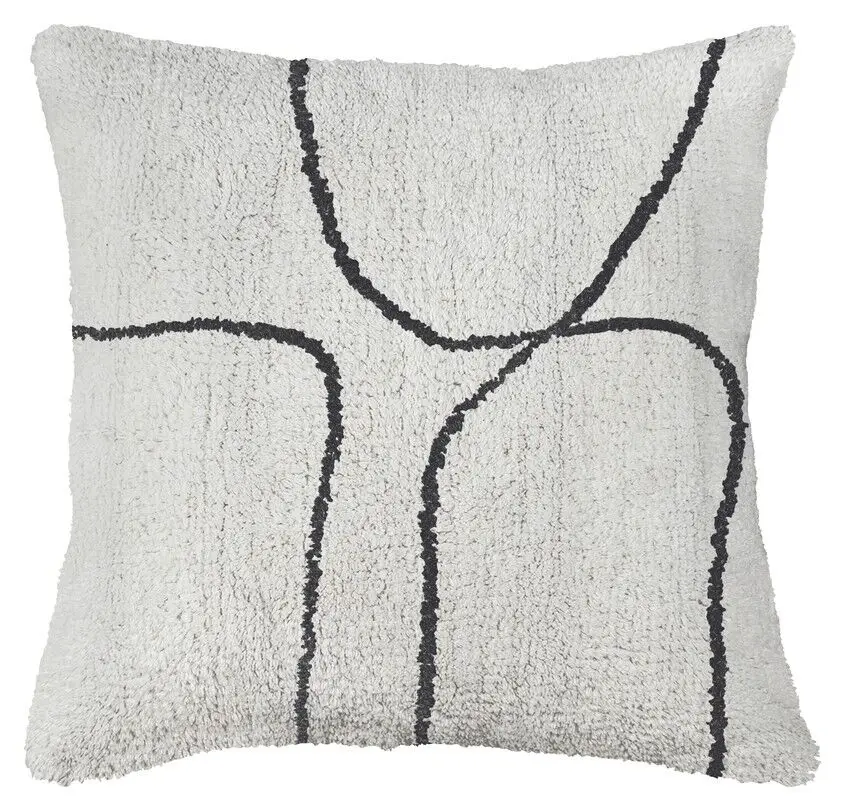 SHADOW pudebetrækket fra Mette Ditmer er udført i en blød, tuftet kvalitet med et line art-mønster i organiske former. Det mørkegrå mønster står i kontrast til den off-white bund og giver puden et grafisk, men roligt udtryk. Farvevalget er enkelt og afstemt og skaber ro og dybde i indretningen. Begge sider er ens i kvalitet og mønster, så pudebetrækket fremstår ensartet og gennemført – uanset hvordan det vendes. Det tuftede mønster skaber en markant tekstur og en blød, taktil overflade, der gør puden til et indbydende element i sofaen, på sengen eller i lænestolen. Bemærk venligst, at dette produkt kun er et pudebetræk.