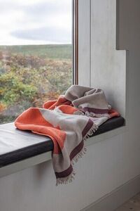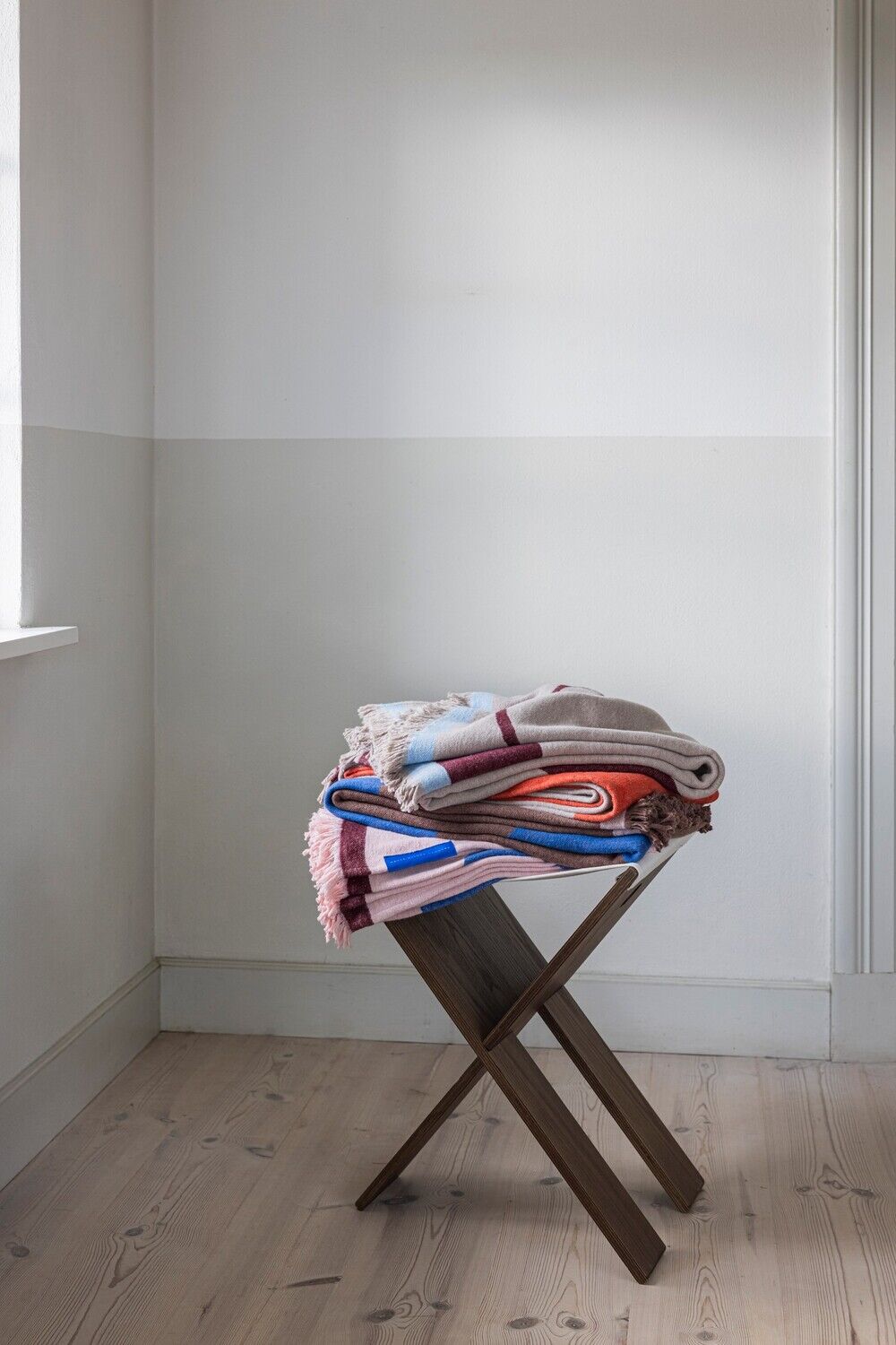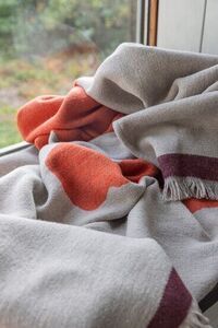 Dette tæppe fra Mette Ditmer kombinerer et abstrakt mønster i orange og beige nuancer med en praktisk materialesammensætning. Tæppet måler 130 cm i bredden og 175 cm i længden, hvilket giver dig fleksibilitet til både sofaen og sengen. Materialet består af 70 % genanvendt bomuld og 30 % polyester.