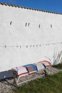 Med sine 130 x 175 cm passer tæppet til de fleste standardsofaer og kan også bruges som et ekstra lag på sengen. Polyesterindholdet gør det mere slidstærkt end rent bomuld, mens den genanvendte bomuld giver en blødere tekstur. Frynserne kan kræve lidt ekstra opmærksomhed ved vask.