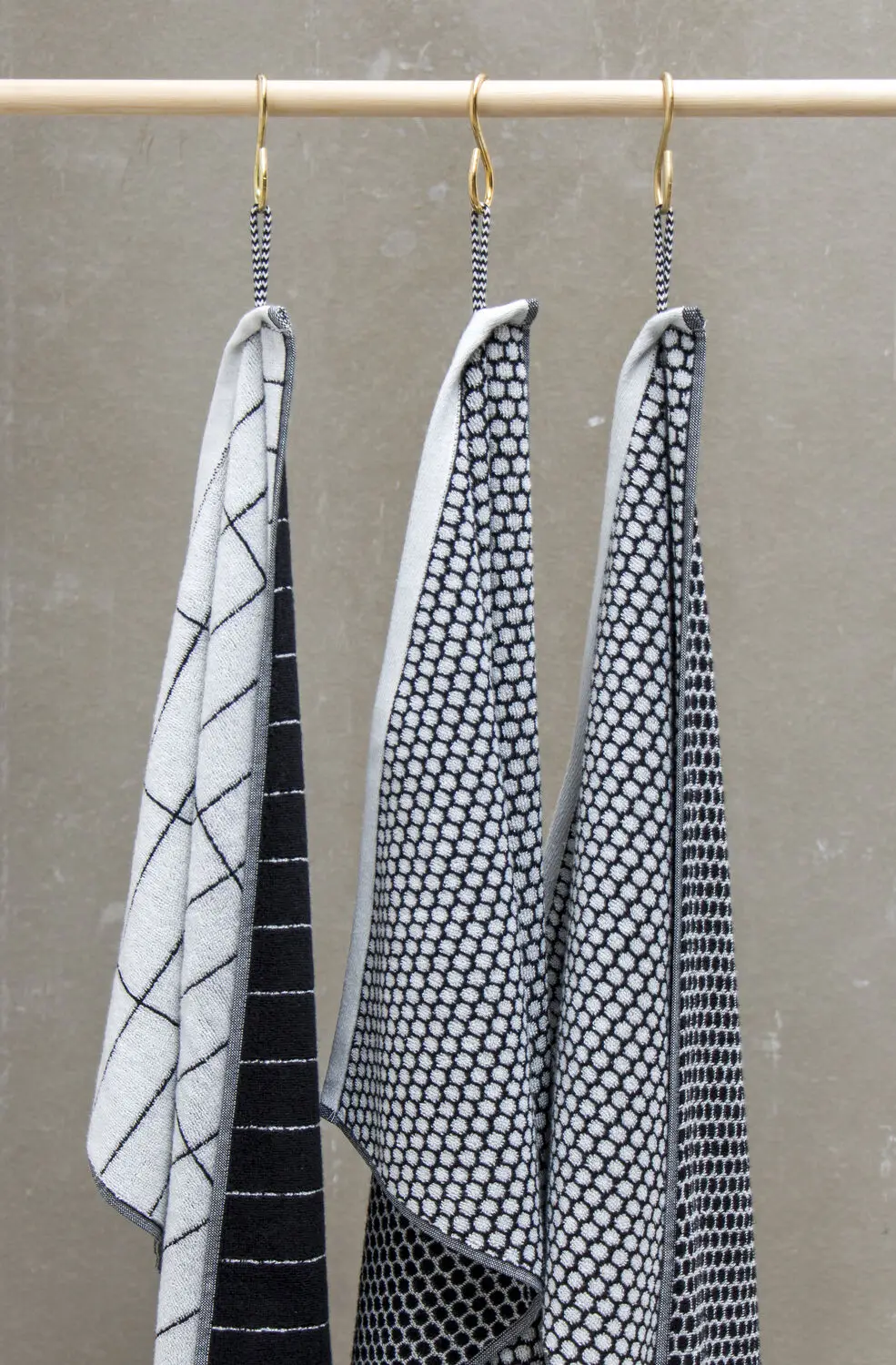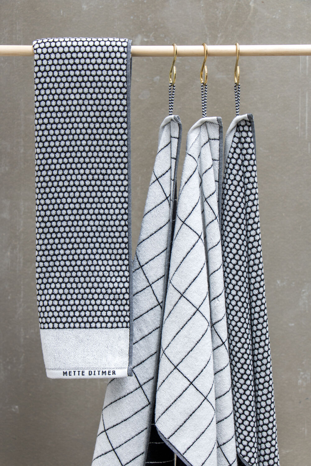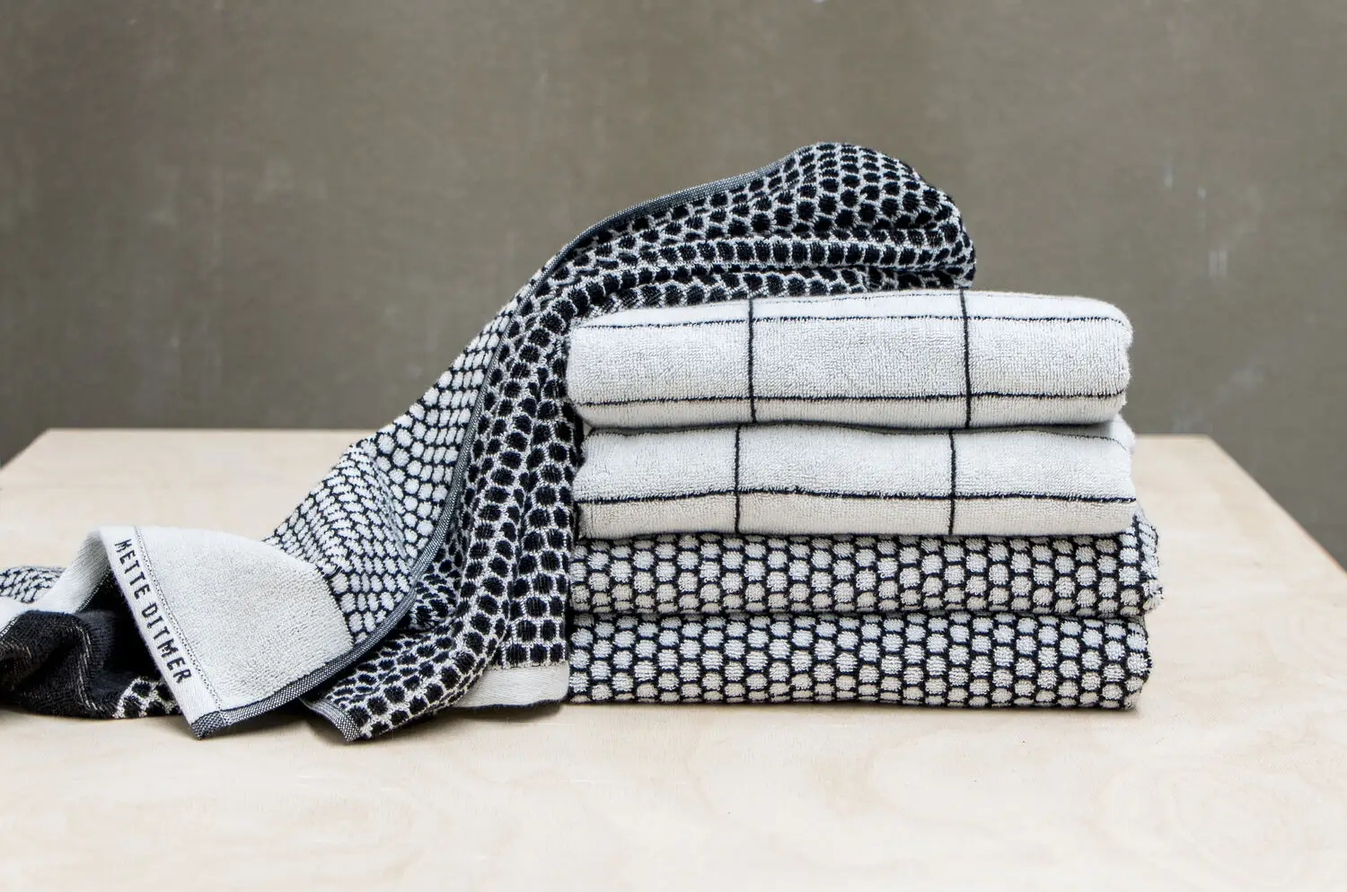 Håndklæderne TILE STONE har et enkelt design med spinkle sorte striber, der henleder tankerne på et klassisk flisemønster. TILE STONE har et grafisk udtryk med undertoner af et retro element, der komplementerer badeværelser i enkel, nordisk stil. Mix og match med håndklæder i designet GRID og skab dynamik ved at blande de grafiske mønstre. TILE STONE er skabt i 100% bomuld, OEKO-TEX® 100-certificeret, hvilket giver håndklæderne en enestående blødhed, der bevares vask efter vask.