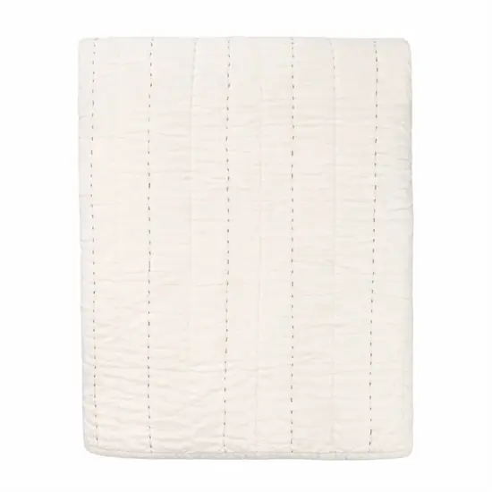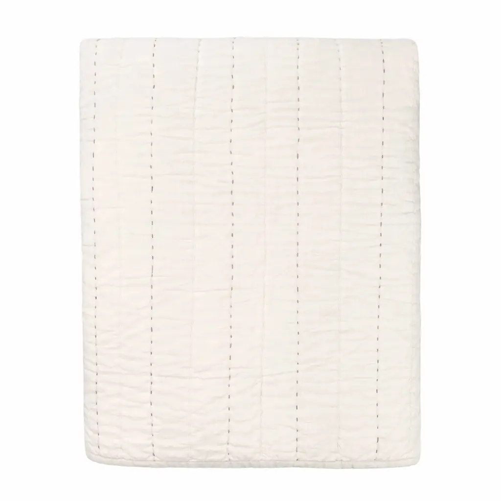 Dette håndquiltede sengetæppe i blød, vasket bomuld giver din seng et roligt udtryk med sine lodrette syninger. Med genanvendt bomuldsfyld forener det komfort og miljøbevidsthed i et tidløst design.