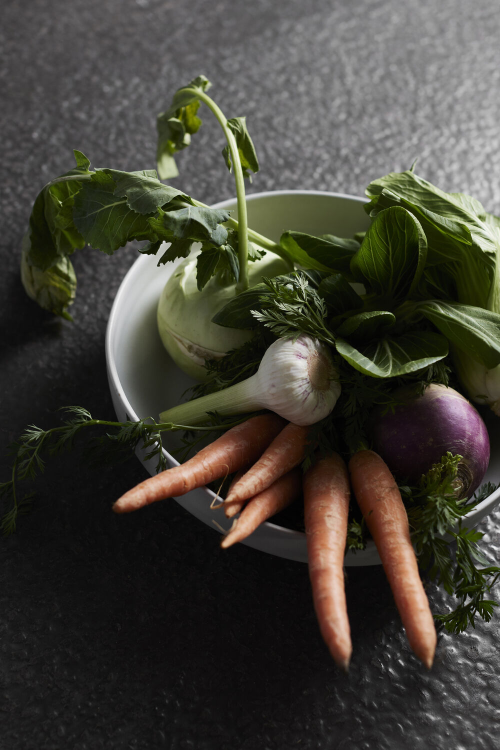 Salatskålen er skabt med et enkelt og moderne udtryk, mens den elegante bund løfter designet og giver stentøjet et svævende udtryk.
