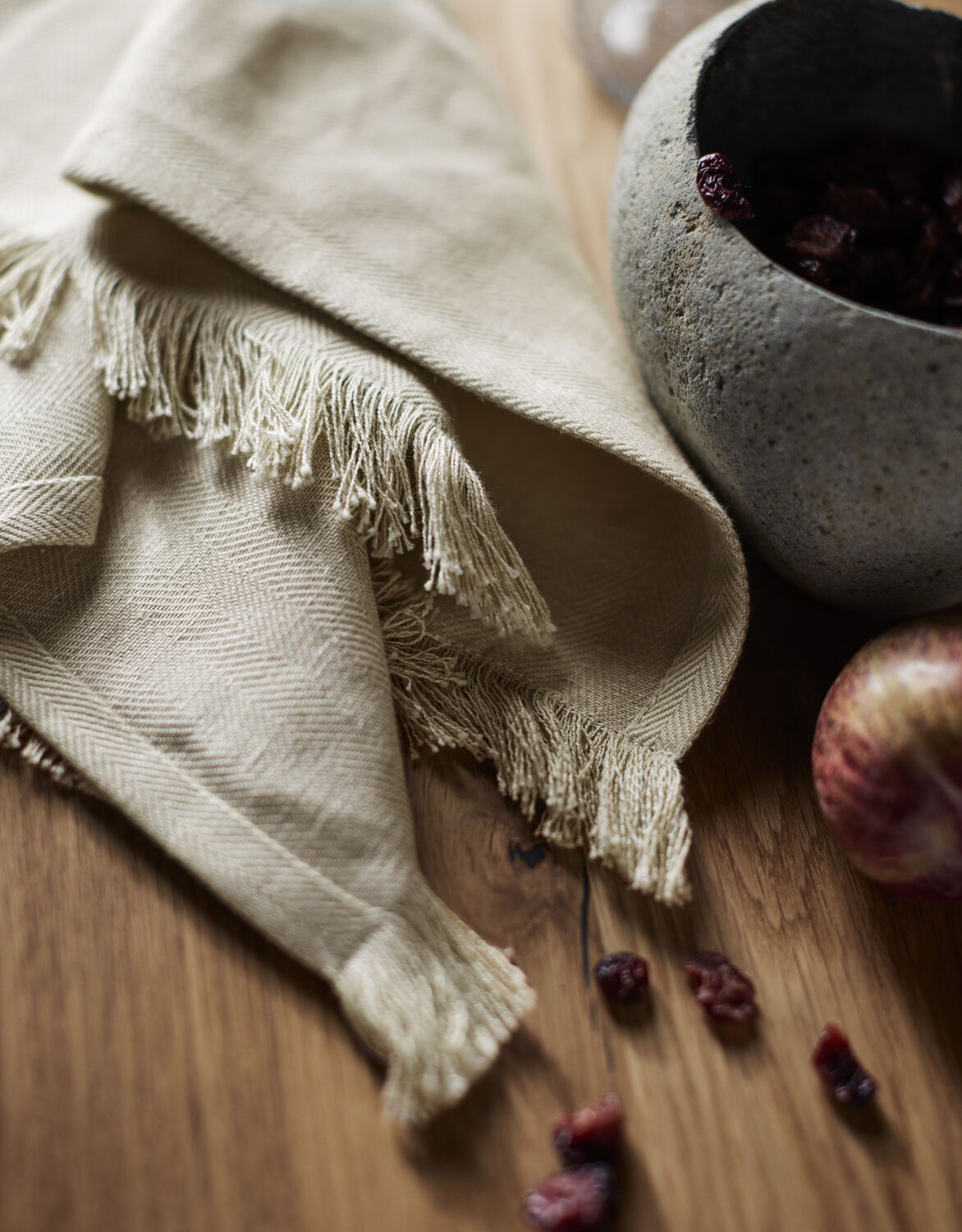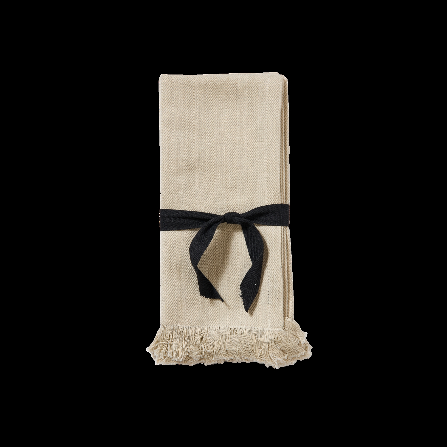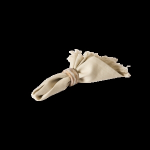 De dekorative frynser på to sider giver mundservietten et enkelt, uformelt og håndlavet udtryk.