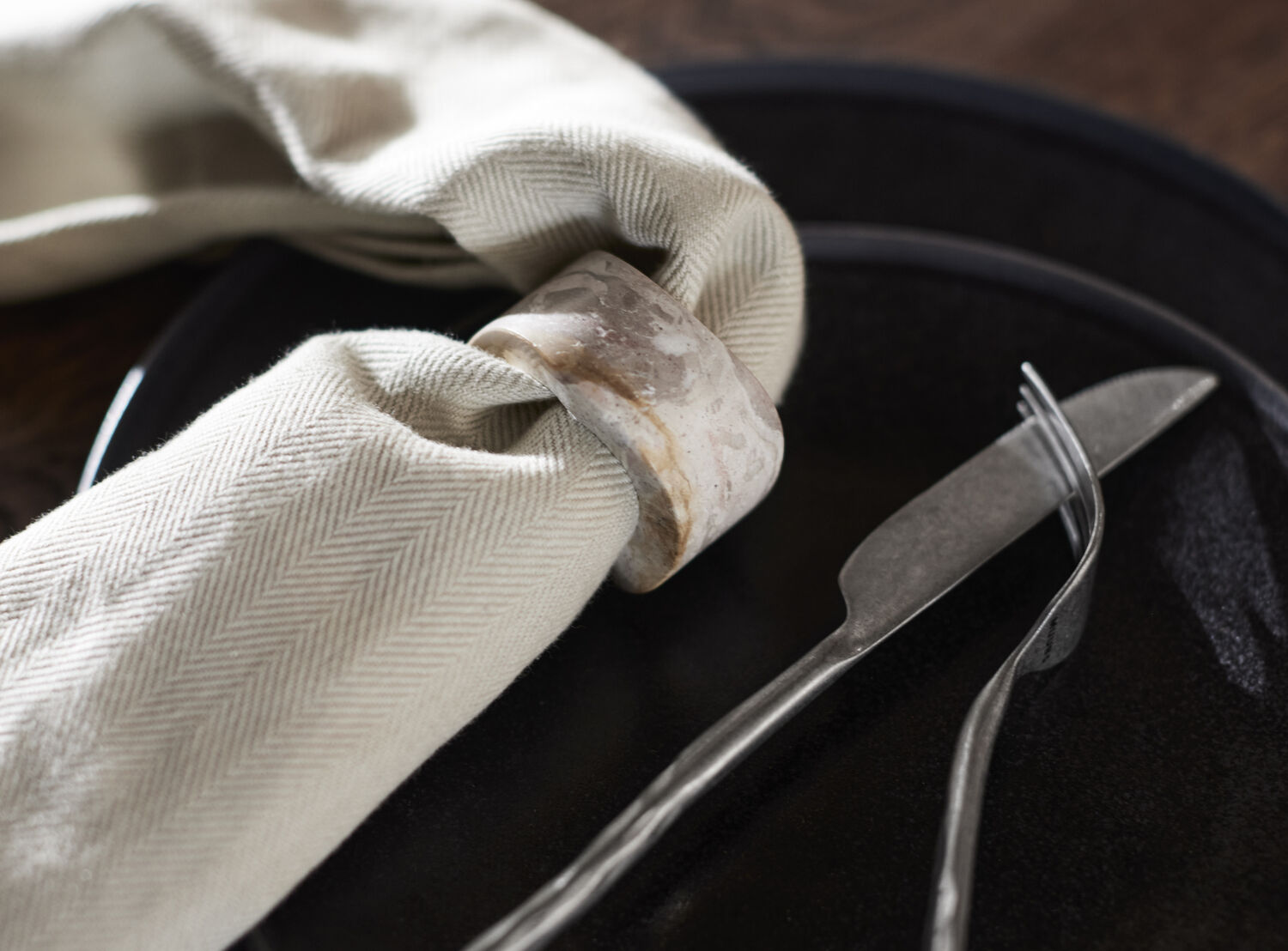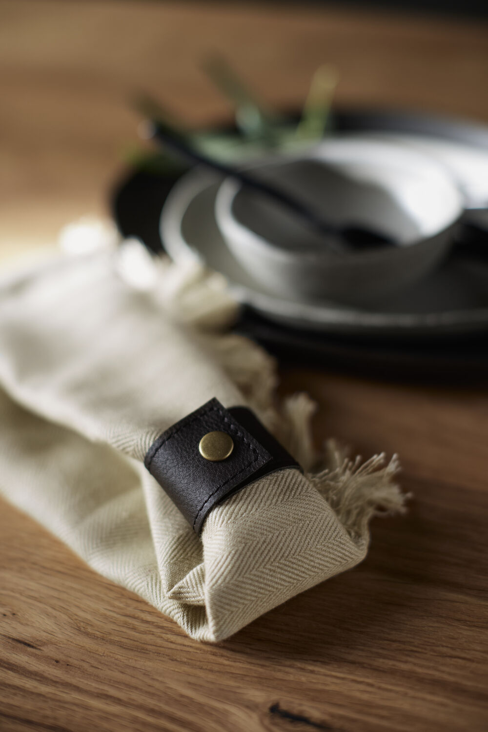 Brug mundservietten sammen med Umami dækkeservietten, der matcher eller skaber kontrast i borddækningen.