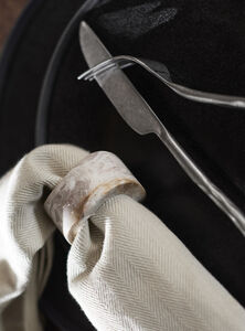 Vita er en serie af ekstraordinært køkken- og boligtilbehør, der forskønner indretningen med et stærkt og smukt stykke af naturen. De små marmorkunstværker i Vita-serien, udstråler både enestående elegance og raffinement. Vita servietringen tilføjer en luksuriøs og sofistikeret detalje til din borddækning. Brug den til at omfavne dine servietter og giv dem et eksklusivt udtryk, der både er funktionelt og elegant. Vita servietringen er fremstillet af cremefarvet marmor. Den naturlige variation i farver og mønstre gør hvert Vita produkt unikt og skaber en smuk kontrast til de øvrige materialer i din indretning. Bemærk venligst: Da marmor er et naturmateriale, kan der forekomme små variationer fra produkt til produkt. Hvert sæt indeholder fire individuelle servietringe.