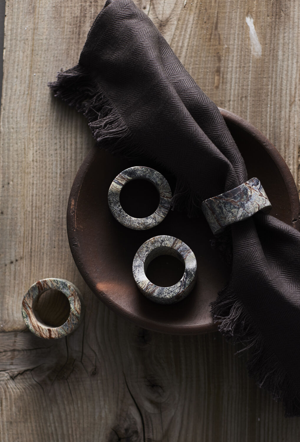 Vita servietringen er fremstillet af cremefarvet marmor. Den naturlige variation i farver og mønstre gør hvert Vita produkt unikt og skaber en smuk kontrast til de øvrige materialer i din indretning.