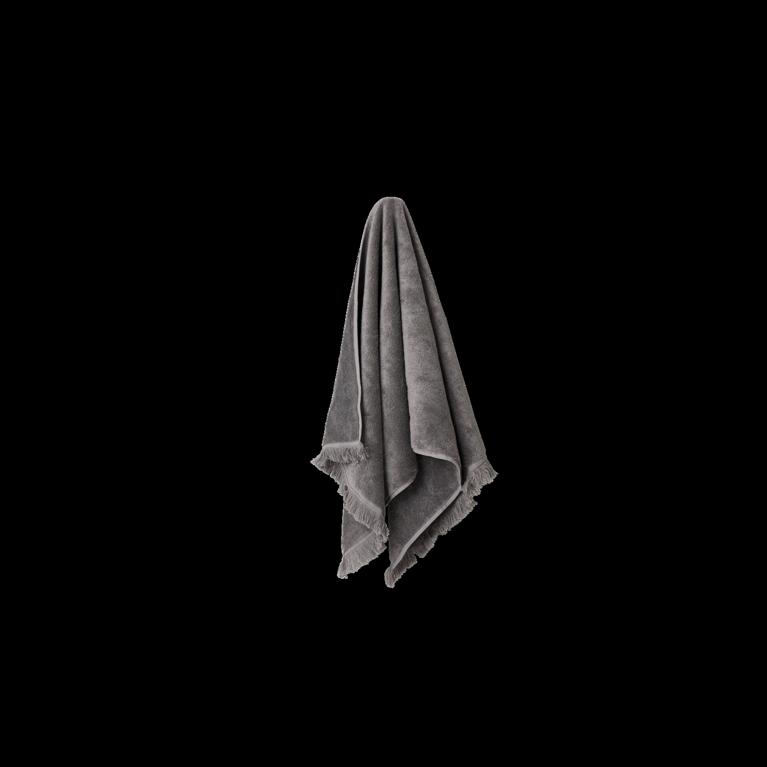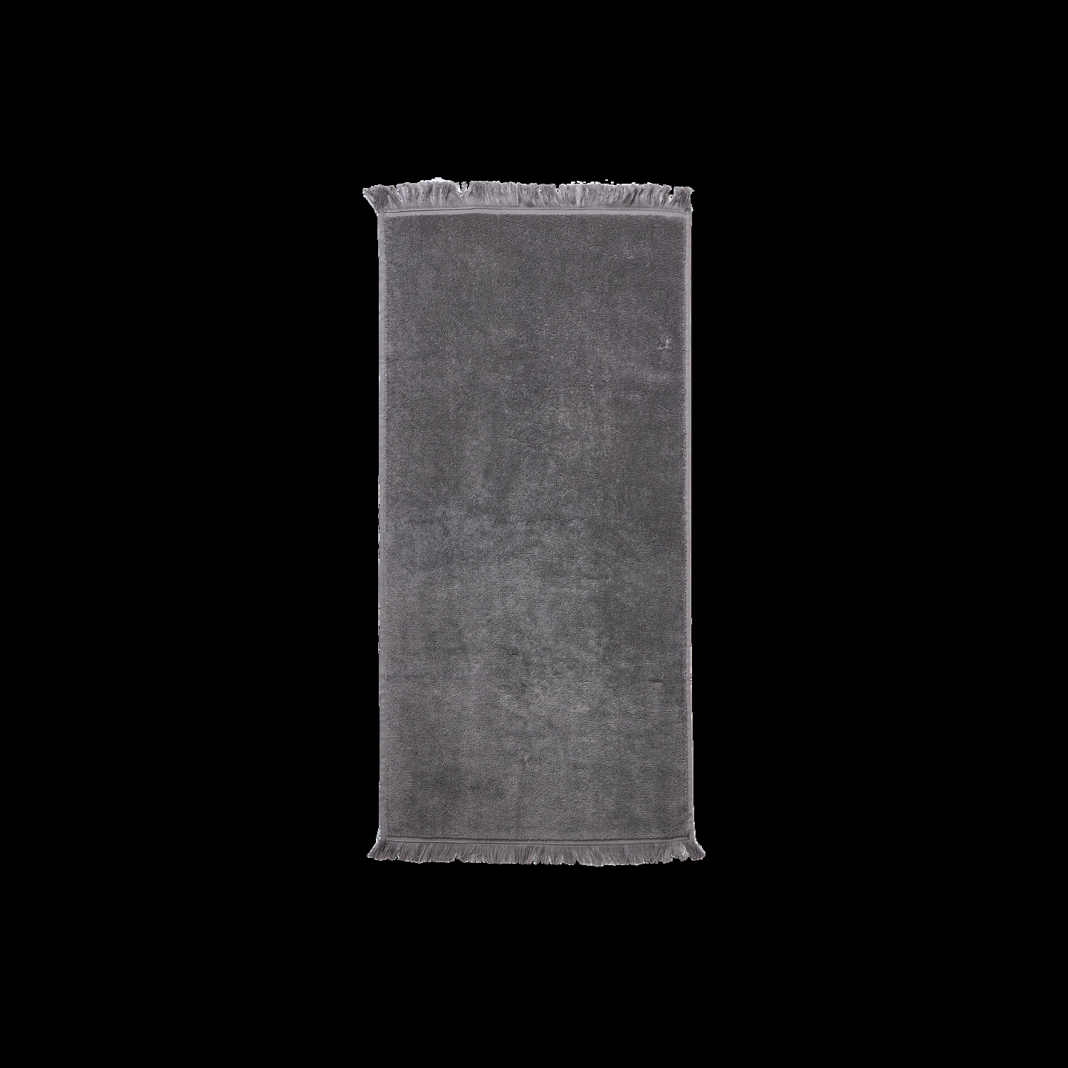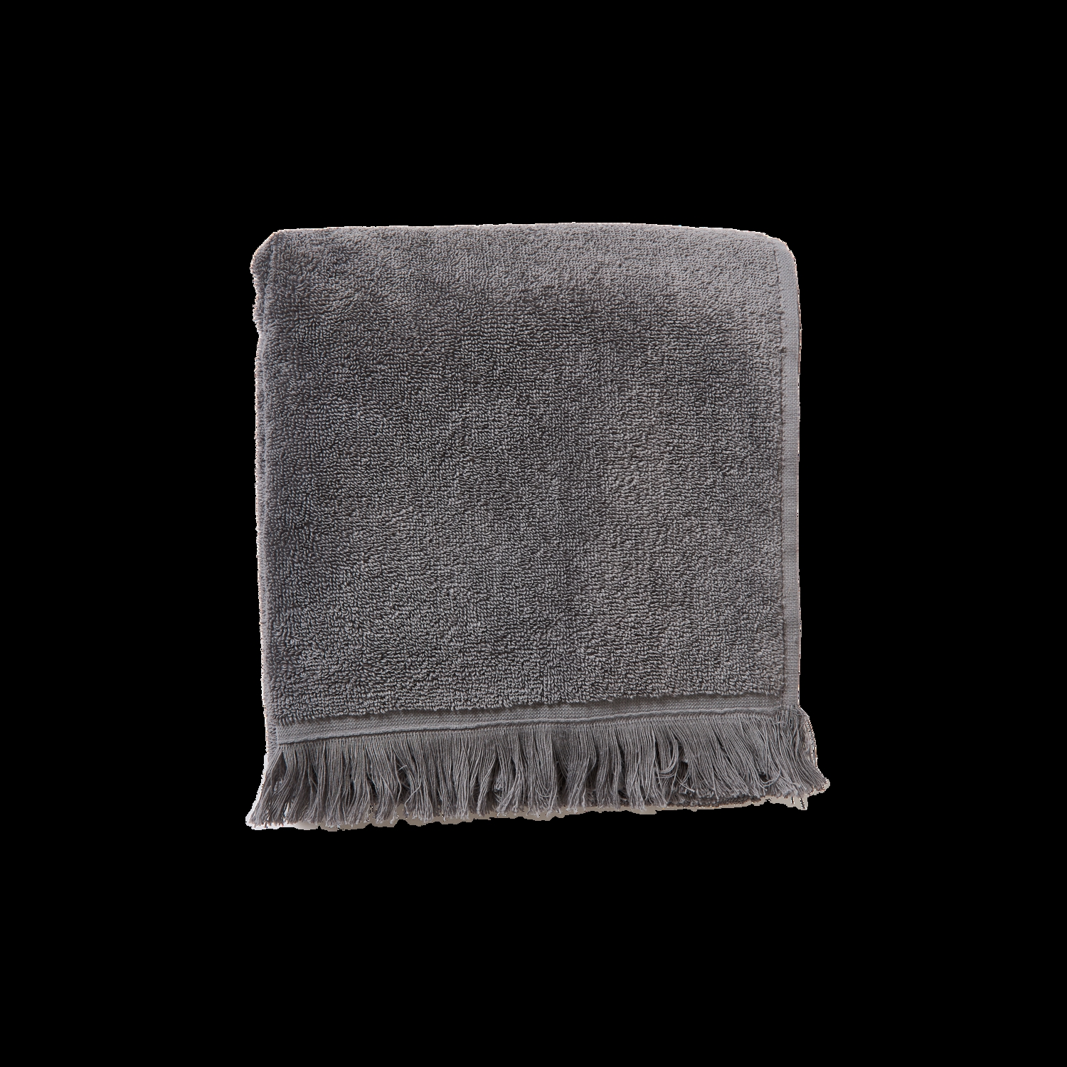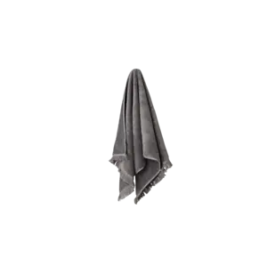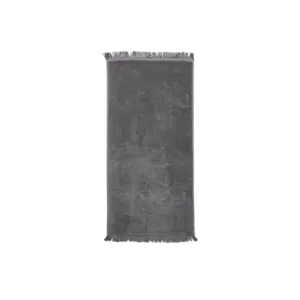 Aiho håndklædet er designet i en æstetisk mørkegrå farve med dekorative frynser i hver ende, der understreger seriens afslappede udtryk.