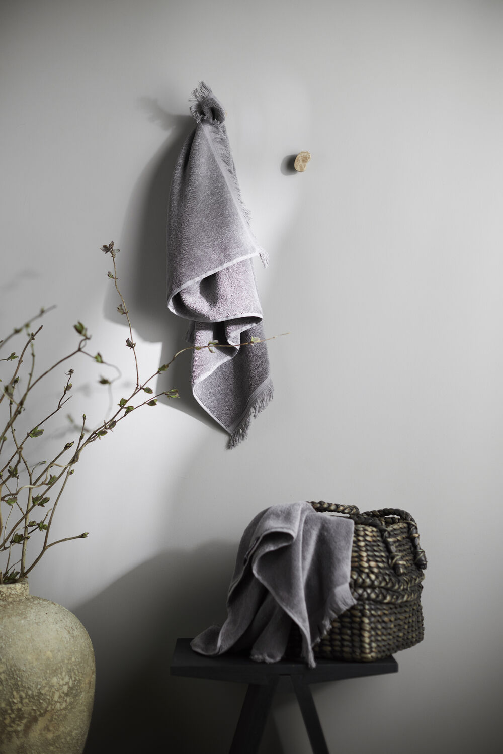 Vaskes ved 60 grader. Håndklædet kan tørretumbles. Vaskes med samme farver.