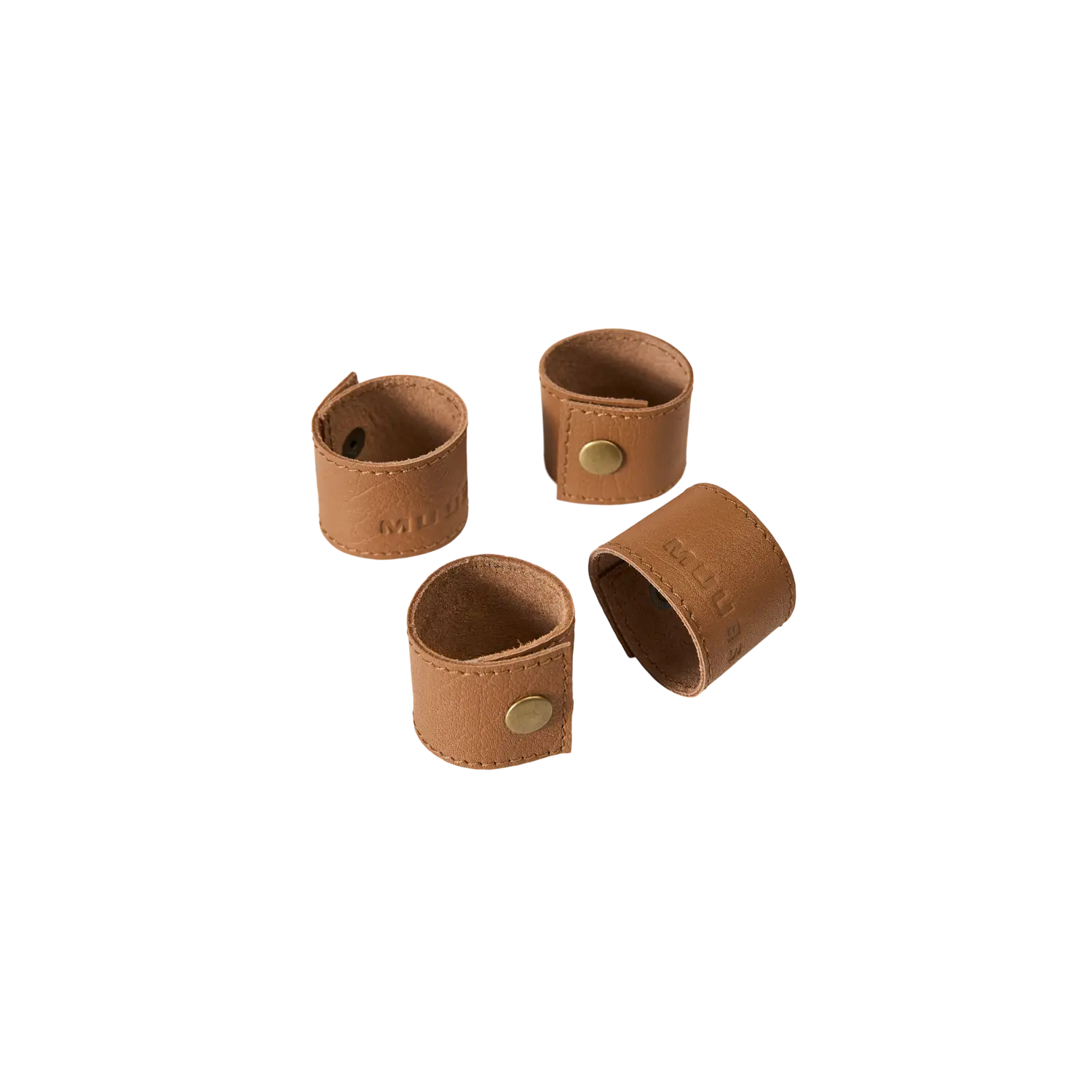 Servietringene er fremstillet af eksklusivt bøffellæder, som er valgt for sin holdbarhed og naturlige skønhed. Læderet vil med tiden patinere og blive blød. For at friske farven op igennem, så kan man med fordel bruge en læderfedt.
