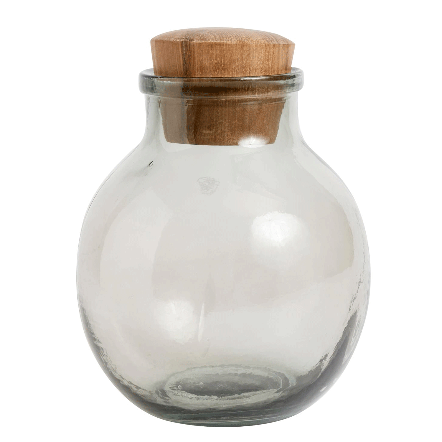 Smart og enkel glas beholder med teaklåg. Smoke krukken er et funktionelt og elegant tilbehør til hjemmet. Smoke har sit navn fra det semitransparente glas med den elegante grå tone. Brug krukken i køkkenet eller til opbevaring af nips eller hobby artikler. Kombiner krukken Smoke i medium med andre Muubs vaser og krukker i forskellige former og størrelser som passer til dine behov og din personlige stil.