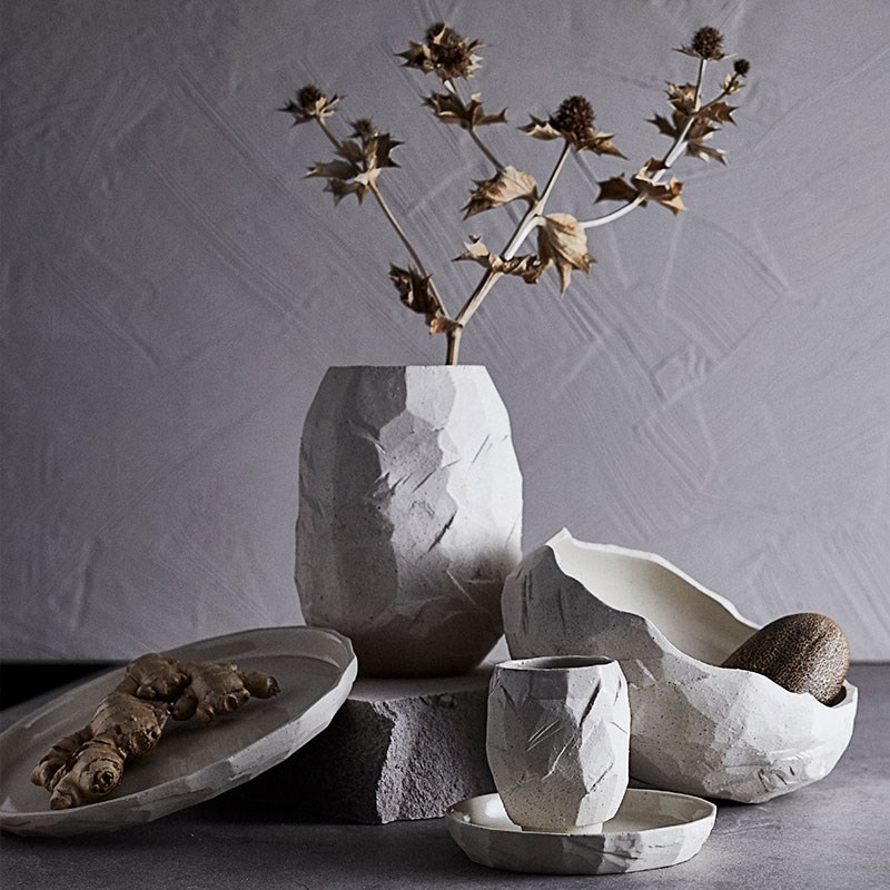 Kuri stentøjsserien er lavet ud fra det gamle traditionelle japanske håndværk Kurinuki, hvor man skaber design ud fra spontanitet. Kuri er skabt med naturlige organiske former, som har en rå kant fra den traditionelle håndværksmetode.