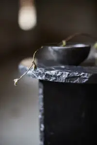 Sidebordets rustikke kanter symboliserer, hvordan marmoren er hugget ud af bjerget, og den rustikke kant giver det mørke sidebord et maskulint og robust look.