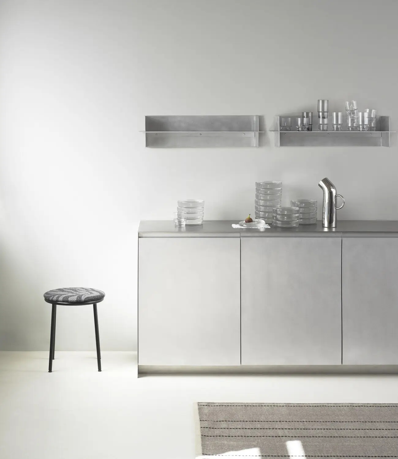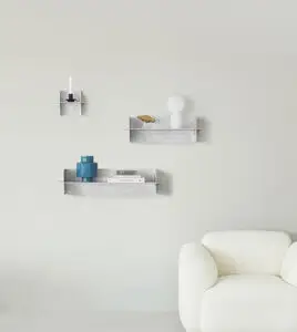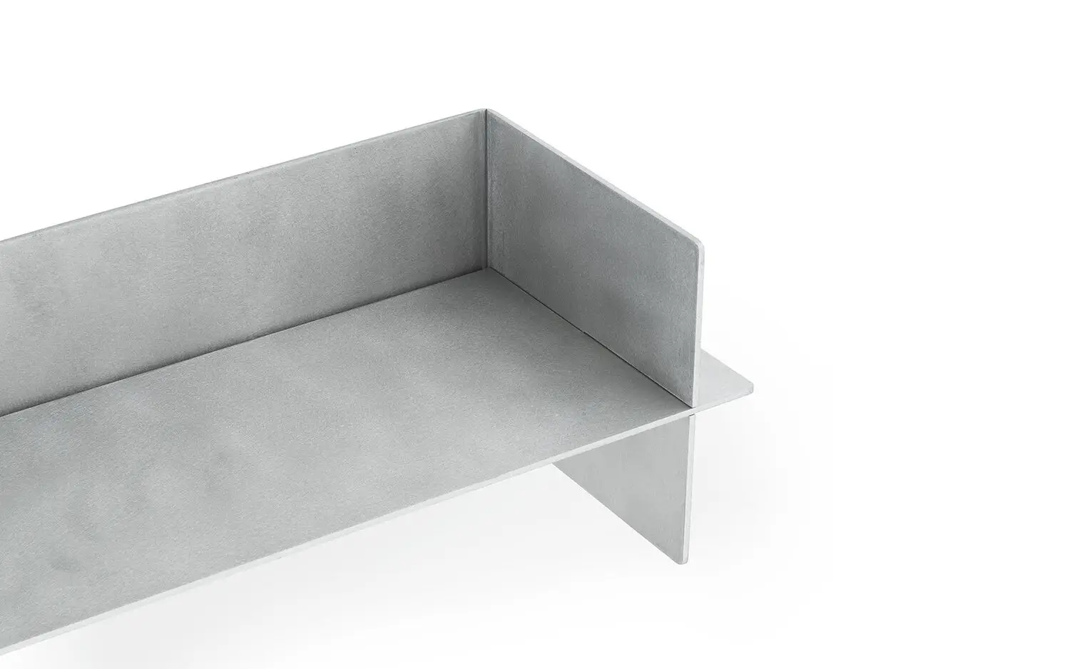Denne vægmonterede hylde kombinerer funktionalitet med et minimalistisk udtryk. Lavet af børstet aluminium giver den et moderne look, der holder år efter år. Med opstående sider holder dine ting sig på plads, mens det rene design passer ind i rum, hvor du værdsætter enkelhed.