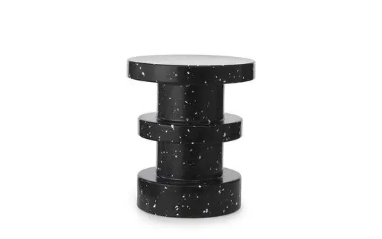 Bit Stool Stack Black er fremstillet i LDPE - et robust materiale, der kombinerer holdbarhed med et moderne udtryk. Det konsistente prikkede mønster på hele overfladen giver skamlen karakter og fungerer som et kunstnerisk element i din indretning.