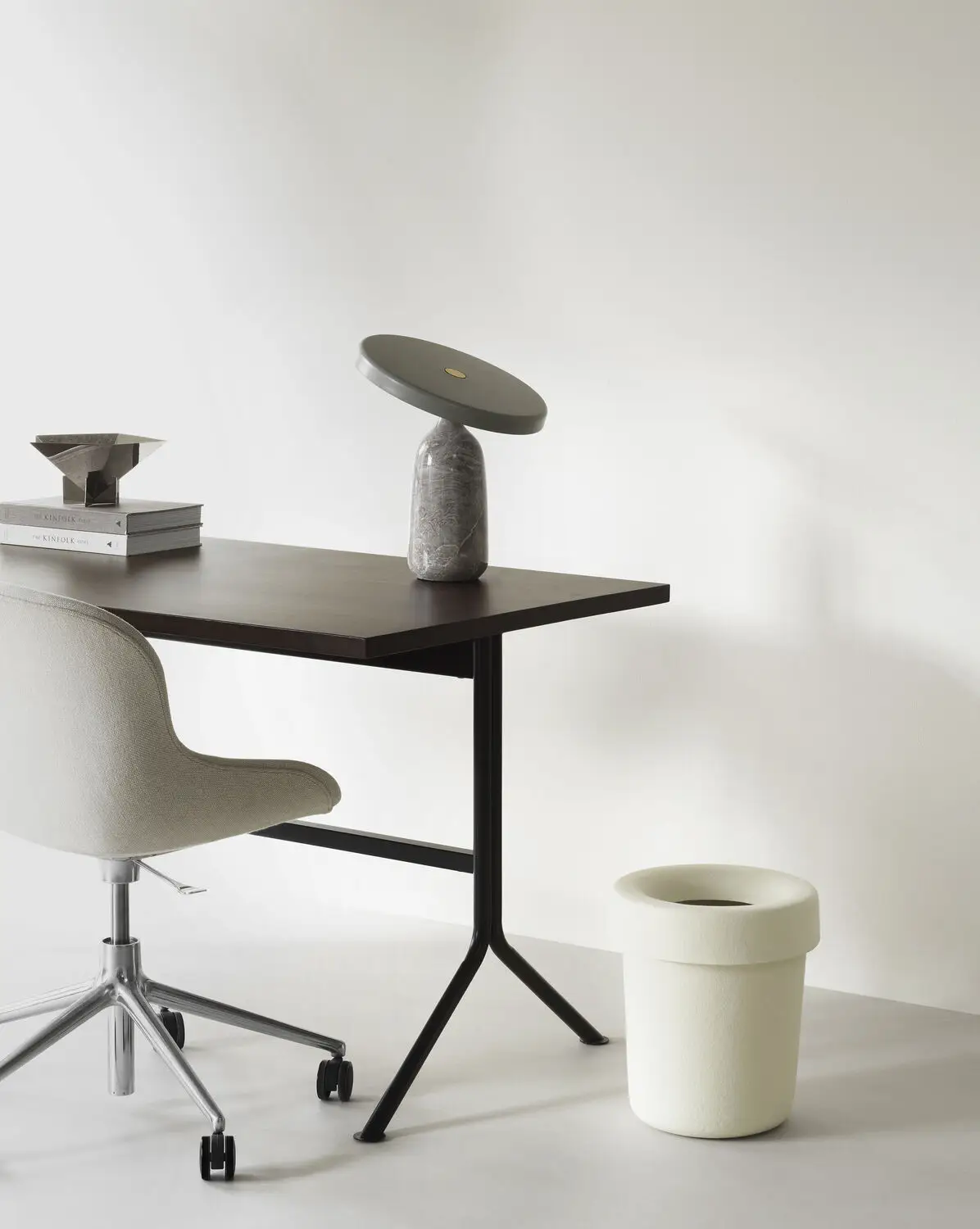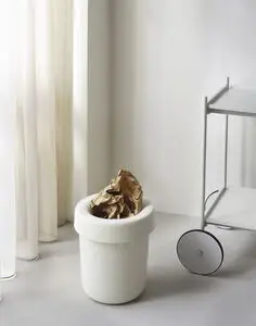 Denne skraldespand fra Normann Copenhagen har en cylindrisk form, der passer ind i hjørner og ved skriveborde uden at optage unødvendig plads. Den off-white cremefarve giver et rent udseende, som kan komplementere forskellige farveskemaer i både kontoret og hjemmet.