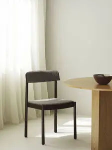 FSC™-certificeringen gælder både fineren og rammen, hvilket sikrer, at træet er sporbart tilbage til bæredygtige skovområder. Asketræet er anerkendt for sin styrke og naturlige tekstur, mens den malede og lakerede overflade beskytter materialet og gør stolen nem at vedligeholde. Den mørkebrune farve giver et roligt udtryk, der passer ind i forskellige indretningsstile.