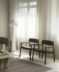 Denne lounge stol kombinerer moderne design med omhyggeligt udvalgte materialer. Rammen er lavet af FSC™-certificeret asketræ, mens sæde og ryg er fremstillet i FSC™-certificeret askefiner. Polstringen består af PU-skum og Ultra Leather i chokoladebrun, som giver en blød overflade med en holdbar finish.