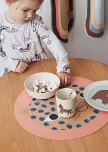 Med sit smarte og populære udseende vil Snow Leopard dækkeserviet beskytte dit bord mod spildt mad og drikke. Udover sin praktiske anvendelse er Leo dækkeservietten bare sød at se på og super til børne. Hullet i hjørnet gør det muligt at hænge dækkeservietterne op.