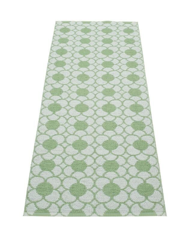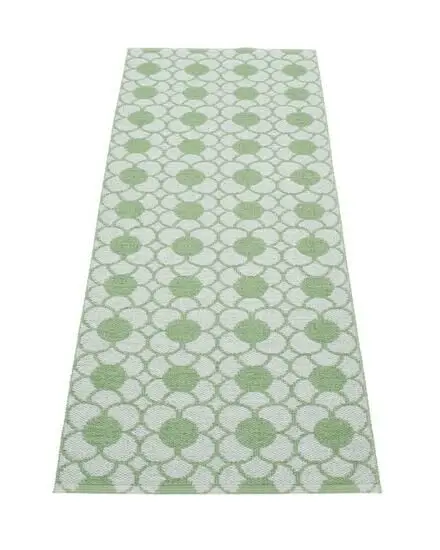 Det rektangulære format passer naturligt ind i de fleste rum, og dimensionerne 70 x 200 cm fungerer godt i entréer, køkkener eller på altaner. Det grønne og lyse farveskema tilføjer et roligt element uden at dominere. Pappelina står bag produktet, hvilket sikrer gennemtænkt design og kvalitet i udførelsen.