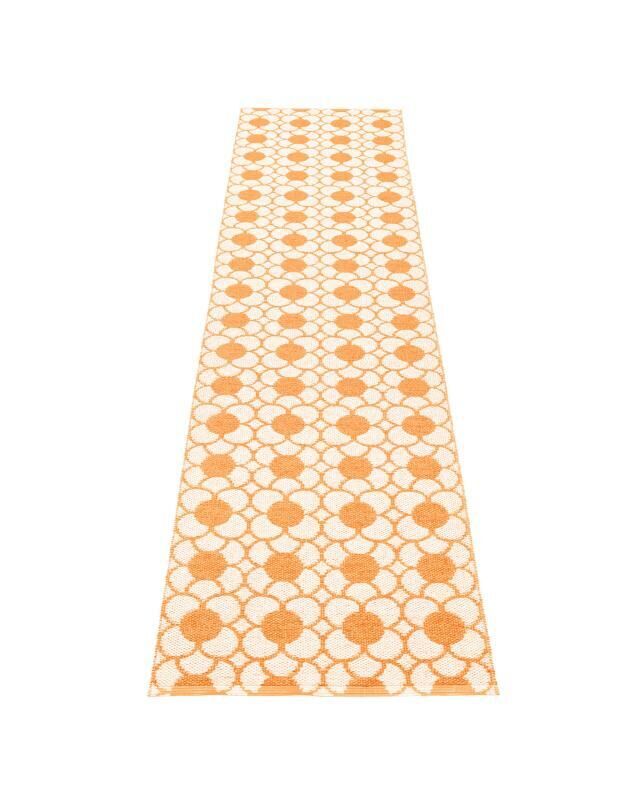 Dette gulvtæppe fra Pappelina måler 70 x 300 cm og er håndvævet i Sverige. Den lange og smalle form gør det velegnet til gange, entréer eller andre smalle rum, hvor du har brug for både funktion og stil.