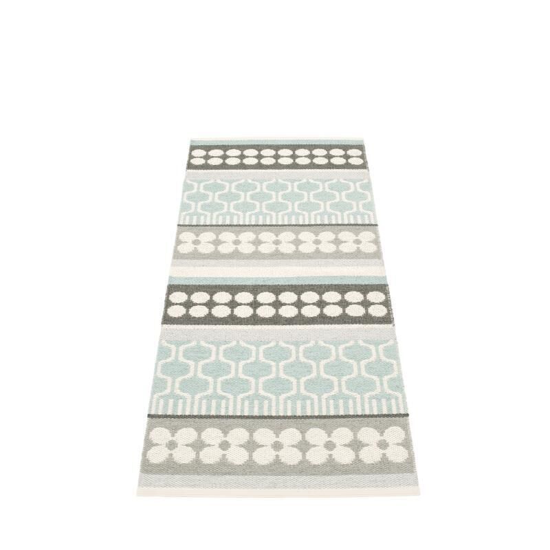 Dette tæppe fra Pappelina måler 70 x 180 cm, hvilket gør det velegnet til smalle områder som gange, foran køkkenvasken eller langs sengen. Dimensionerne giver dig en konkret ramme at planlægge ud fra, så du ved præcist, hvor tæppet passer ind i dit hjem.