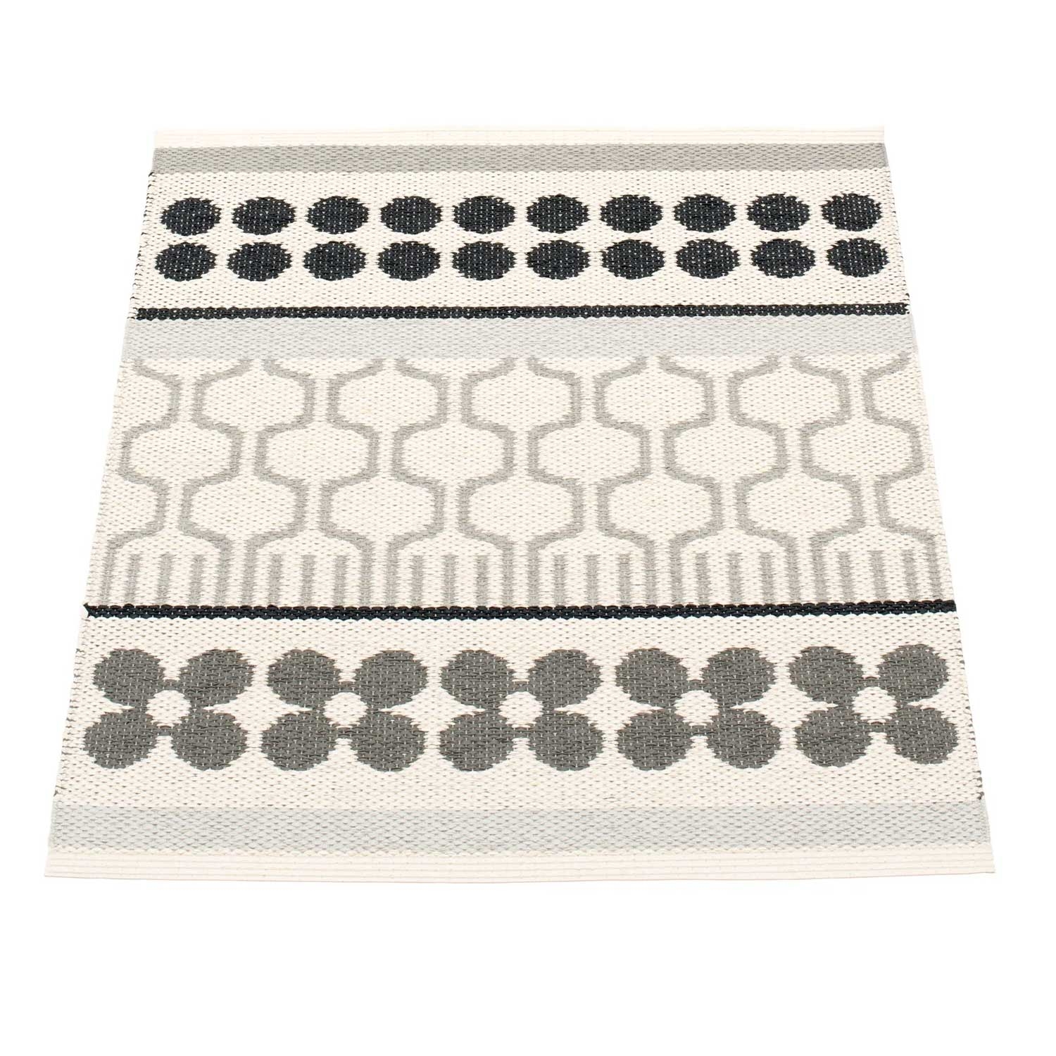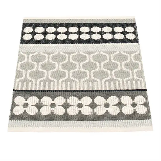 Dette tæppe fra Pappelina er fremstillet af materialer af høj kvalitet, der sikrer holdbarhed og lang levetid. Den varme grå farve er alsidig og kan komplementere en bred vifte af indretningsstile, hvilket gør det til et praktisk valg for dit hjem.