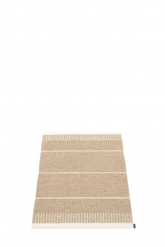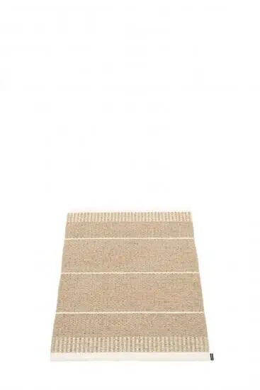 Dette tæppe fra Pappelina har en lys beige farve med vandrette striber og små firkanter, der skaber en visuel kontrast. Mønsteret giver en subtil dybde, som passer ind i forskellige indretningsstile. Tæppet måler 60 x 85 cm, hvilket gør det velegnet til mindre områder.