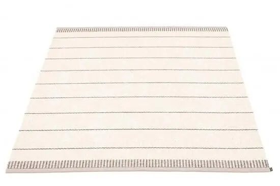 Det stribede mønster i lyse og mørke nuancer gør tæppet nemt at kombinere med forskellige farver og møbelstile. Den lyse rosa tone skaber en blid atmosfære uden at dominere rummet. Kantmønsteret med korte, parallelle linjer tilføjer en detaljeret finish. Materialet er ikke specificeret i produktoplysningerne, så kontakt os gerne for yderligere information.