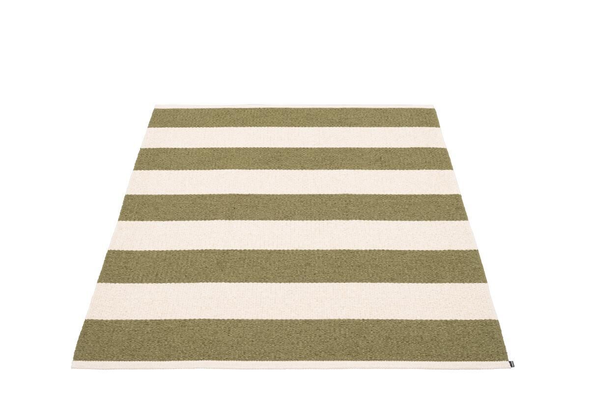 Dette tæppe fra Pappelina bringer moderne skandinavisk design ind i dit hjem med vandrette striber i fyr og vanilje. Størrelsen på 140 x 180 cm gør det velegnet til stuen, soveværelset eller på terrassen, hvor det skaber en stilren base.