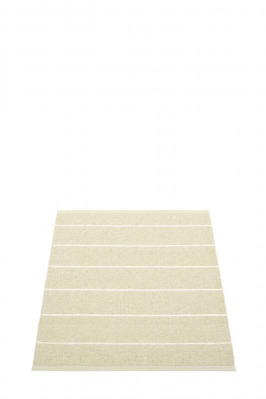 Dette tæppe fra Pappelina måler 70 x 90 cm og passer til mindre områder i hjemmet, hvor du ønsker både funktion og stil. Det stribede mønster veksler mellem lyse og mørkere nuancer, hvilket skaber en rolig visuel effekt uden at dominere rummet.