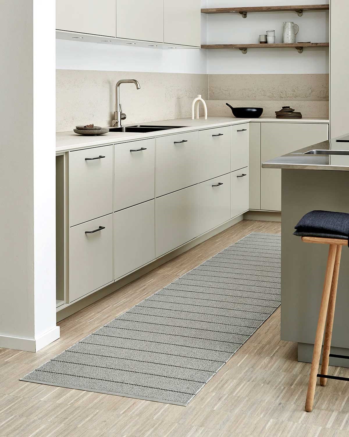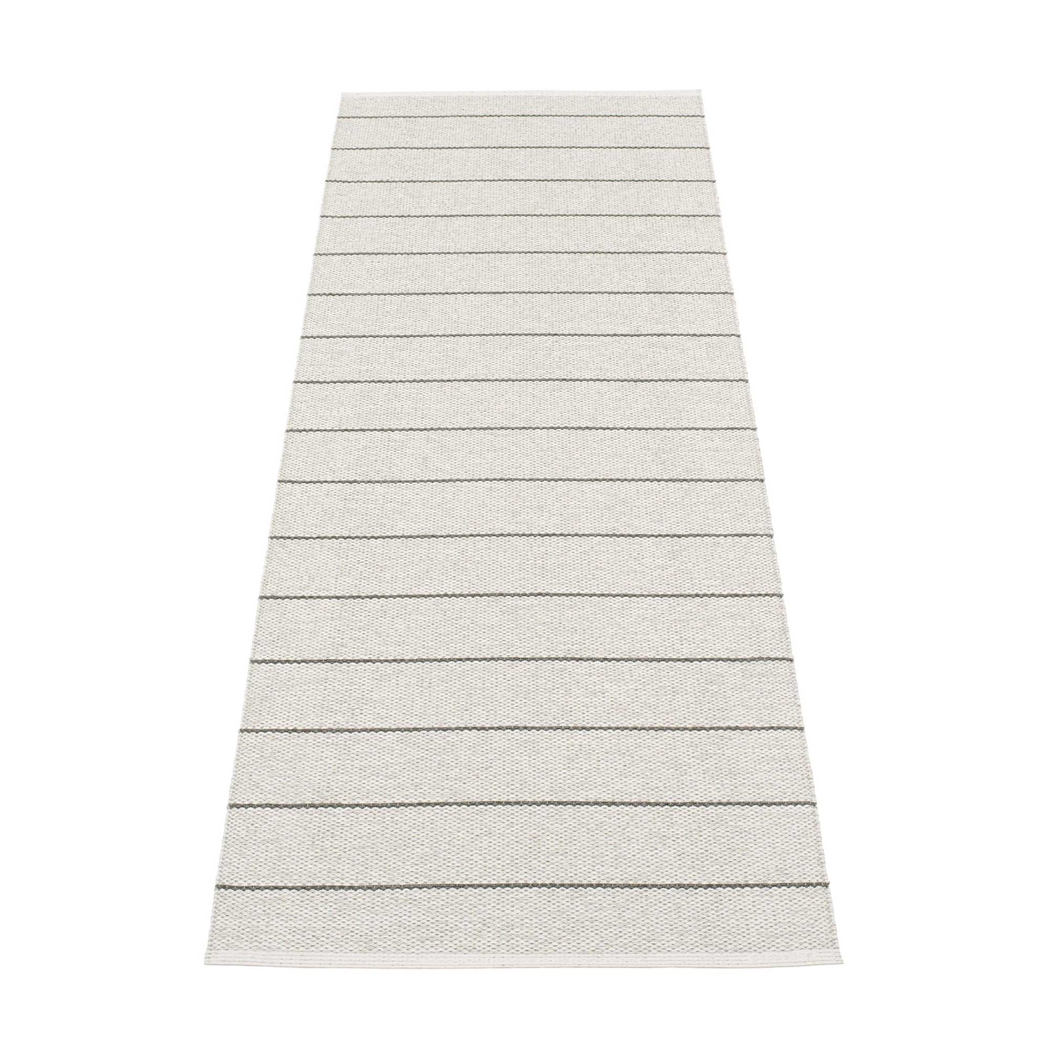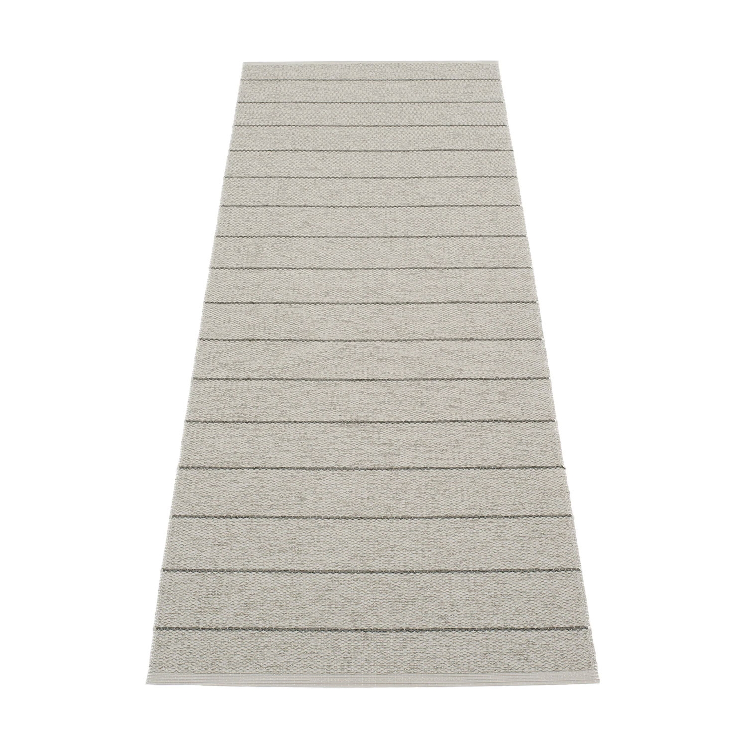 Dette tæppe fra Pappelina er skabt til at fungere både indendørs og udendørs. Materialet er holdbart og let at rengøre, hvilket gør det velegnet til områder med daglig trafik. Med sin varme grå farve passer det naturligt ind i forskellige indretningsstile.