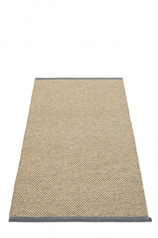 Dimensionerne gør tæppet velegnet til køkkenet foran vasken, i entréen eller som løber i smalle gange. Den neutrale granitfarve matcher forskellige farveskemaer, mens de mørkere kanter definerer tæppets afgrænsning. Pappelinas konstruktion sikrer, at tæppet holder til både indendørs brug og udendørs terrasser.